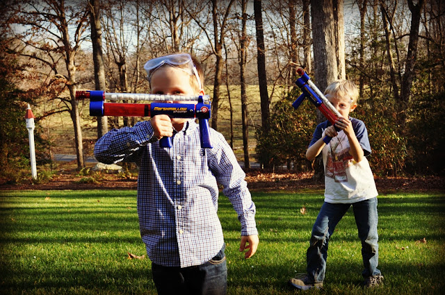 On Saturday we celebrated Christmas with Grandma Ruby. She gave the boys Marshmallow Shooters! They were a hit! After they unloaded 4 bags of marshmallow it looked like it snowed on Grandma Ruby's yard!!!